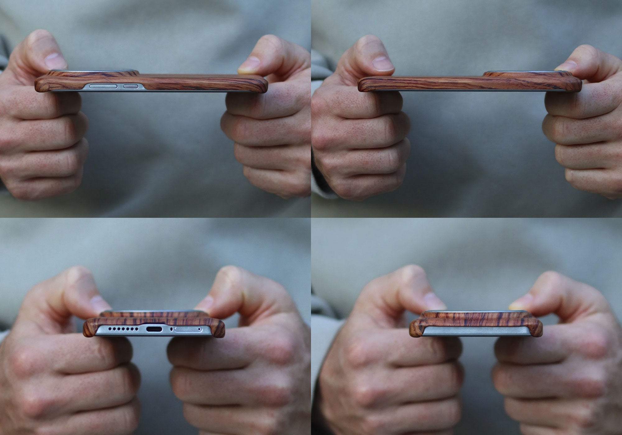 Each case has 2 pieces of ultra-thin FSC-certified wood. Unlike synthetic materials, wood lacks flexibility, so to achieve a form-fitting shape, the wood layers must be carefully molded around the phone's contours.